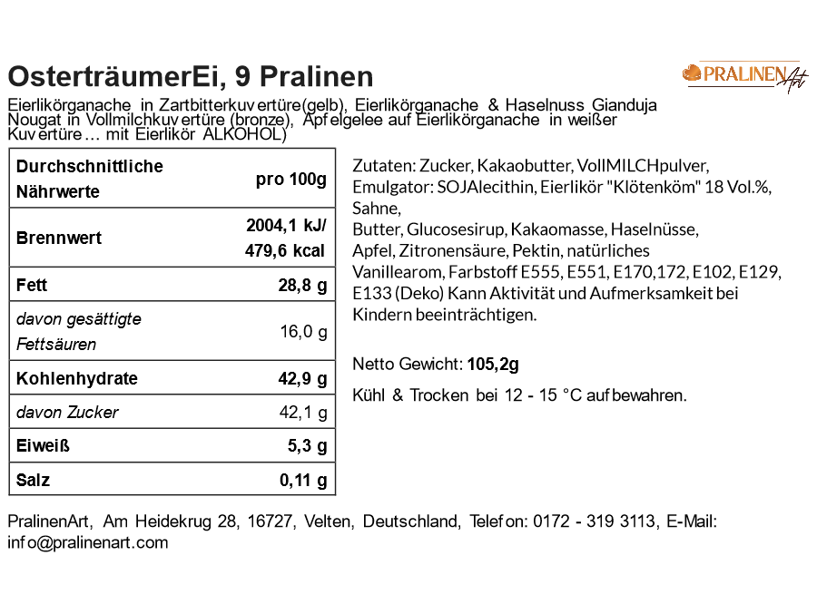 PralinenVariation OsterträumerEi | 9 Eierlikörpralinen | 3 unterschiedliche Eierlikör-Ostereier - 9 handgefertigte Eierlikörpralinen | OsterträumerEi von PralinenArt