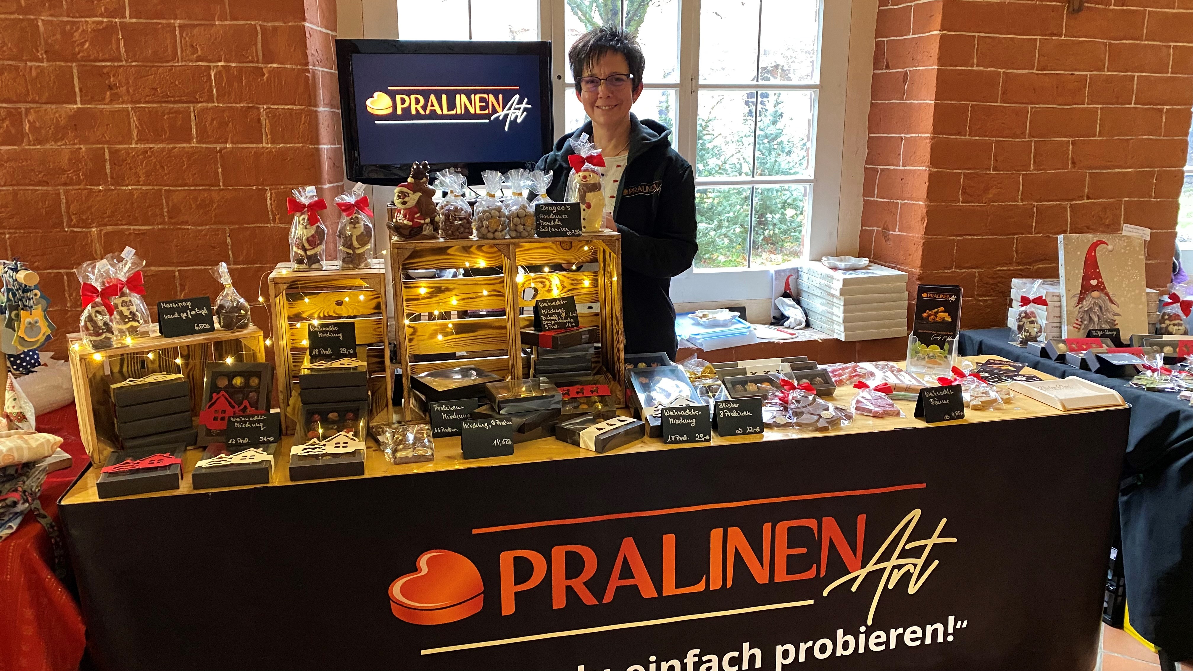 Mein Stand ist nicht nur mit unwiderstehlichen Pralinen gefüllt, sondern auch liebevoll dekoriert, um die festliche Atmosphäre zu unterstreichen. Die Pralinen sind nicht nur ein Augenschmaus, sondern auch ein Gaumenschmaus. Um dir den Start in die Weihnachtszeit zu versüßen, lade ich dich herzlich dazu ein, meine neuesten Kreationen zu probieren. Koste den Hauch von Weihnachten in jeder einzelnen Praline und lass dich von den harmonischen natürlichen Aromen verzaubern.